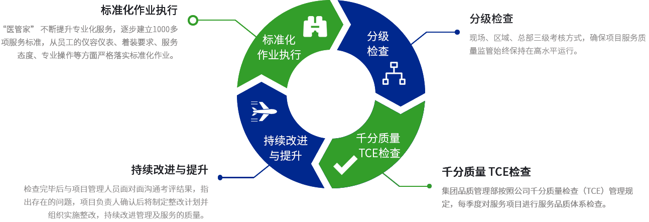 集團品質管理部按照公司千分質量檢查(TCE)管理規(guī)定,每季度對服務項目進行服務品質體系檢查。