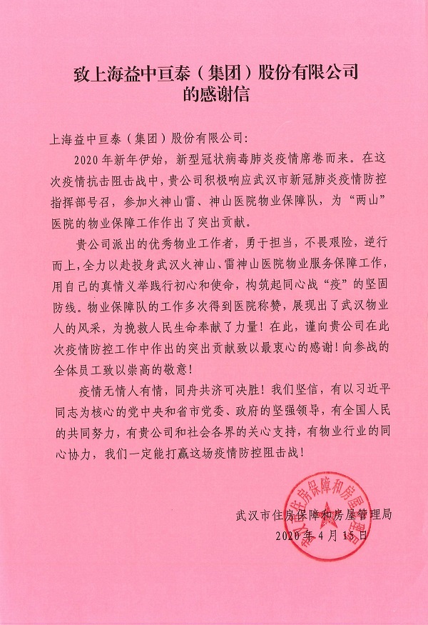 火神山、雷神山抗疫貢獻(xiàn)感謝信