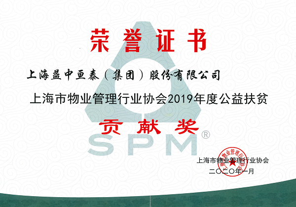 上海市物業(yè)管理行業(yè)協(xié)會(huì)2019年度公益扶貧貢獻(xiàn)獎(jiǎng)