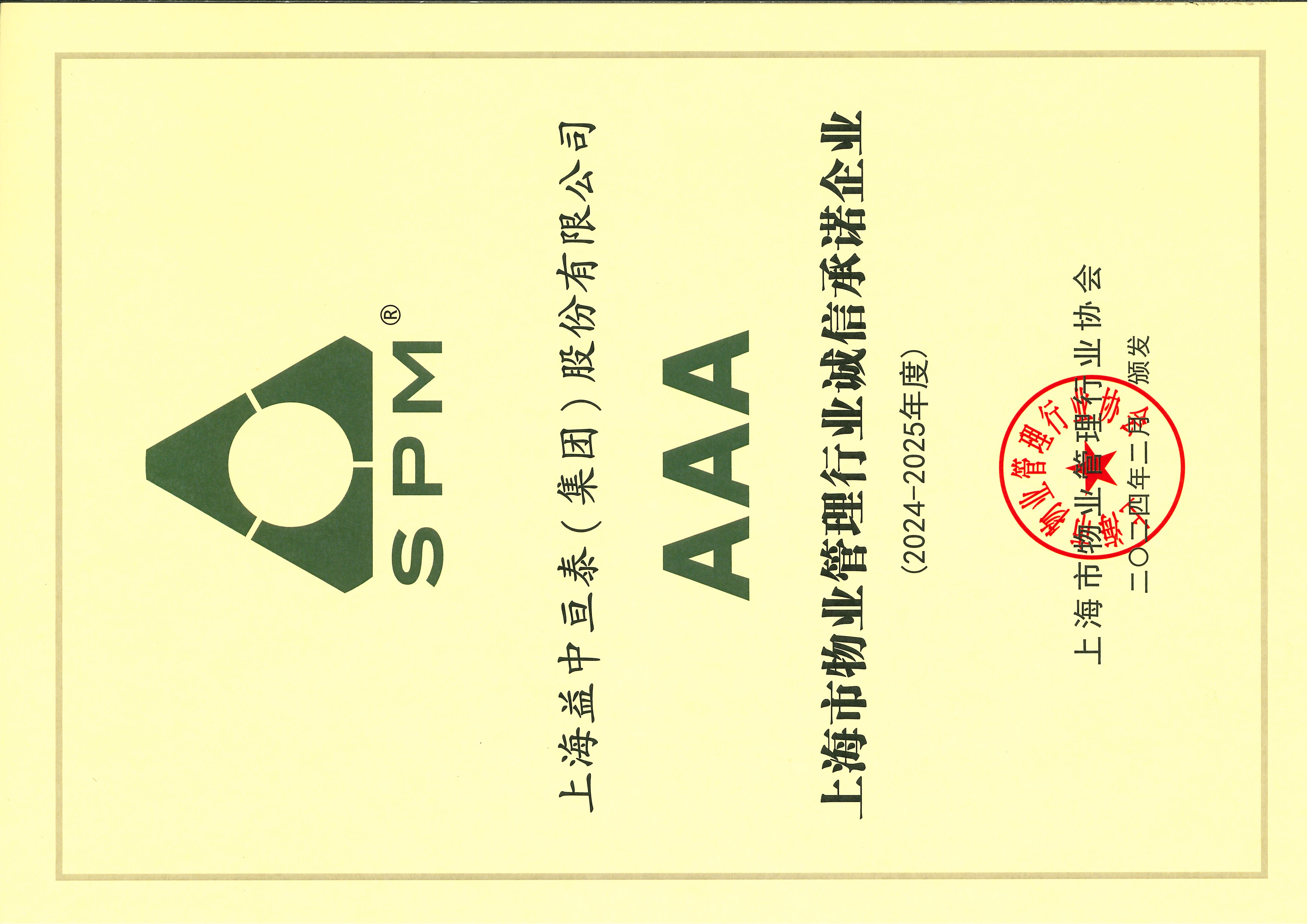 AAA上海市物業(yè)管理行業(yè)誠(chéng)信承諾企業(yè)(2024-2025年度)