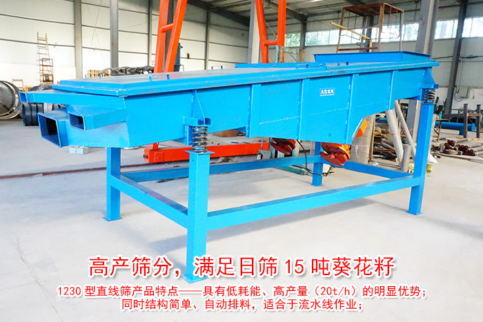 經(jīng)常有用戶(hù)咨詢(xún)我們小編,說(shuō)想要購(gòu)買(mǎi)每天可以篩分15噸葵花振動(dòng)篩,但是不知道用哪種篩分機(jī)??jī)r(jià)格又是多少錢(qián)?下面大漢小編為大家具體介紹一款可以滿足15噸葵花籽日篩的——1230型直線篩