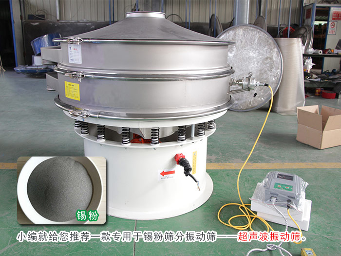 錫粉是一種有色金屬中開發利用程度較高的礦種之一,它的粒度規格有:150μm(-100目)、38μm(-400目)、45μm(-325目)或77μm(-200目)等,它的比重較輕,容易產生靜電問題,所以一般的振動篩很難進行有效篩分,今天小編就給您推薦一款專用于錫粉篩分振動篩——超聲波振動篩。