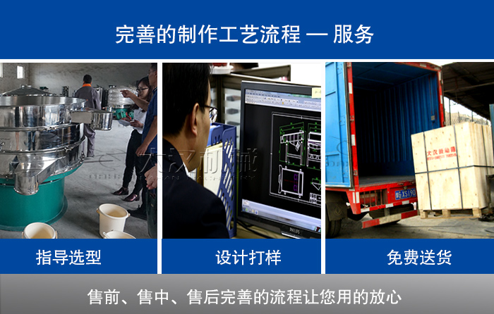 大漢機械生產的三次元振動篩具備完善的制作工藝流程,從您主動聯系大漢的那一刻開始,我們進為您安排一對一的專業跟蹤,讓我們我技術人員為您打造專屬于您的設計方案,直到我們的方案讓您滿意后,再投入后期的生產制造。