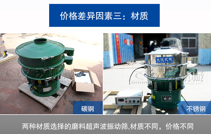 超聲波振動(dòng)篩材質(zhì)有不銹鋼和碳鋼兩種,碳鋼超聲波振動(dòng)篩價(jià)格便宜、熱處理和機(jī)械性能好,雖然它適用的行業(yè)有很多,但是它的材質(zhì)具有一定的腐蝕性,所以對于磨料行業(yè)的用戶來說還是要慎重選擇。