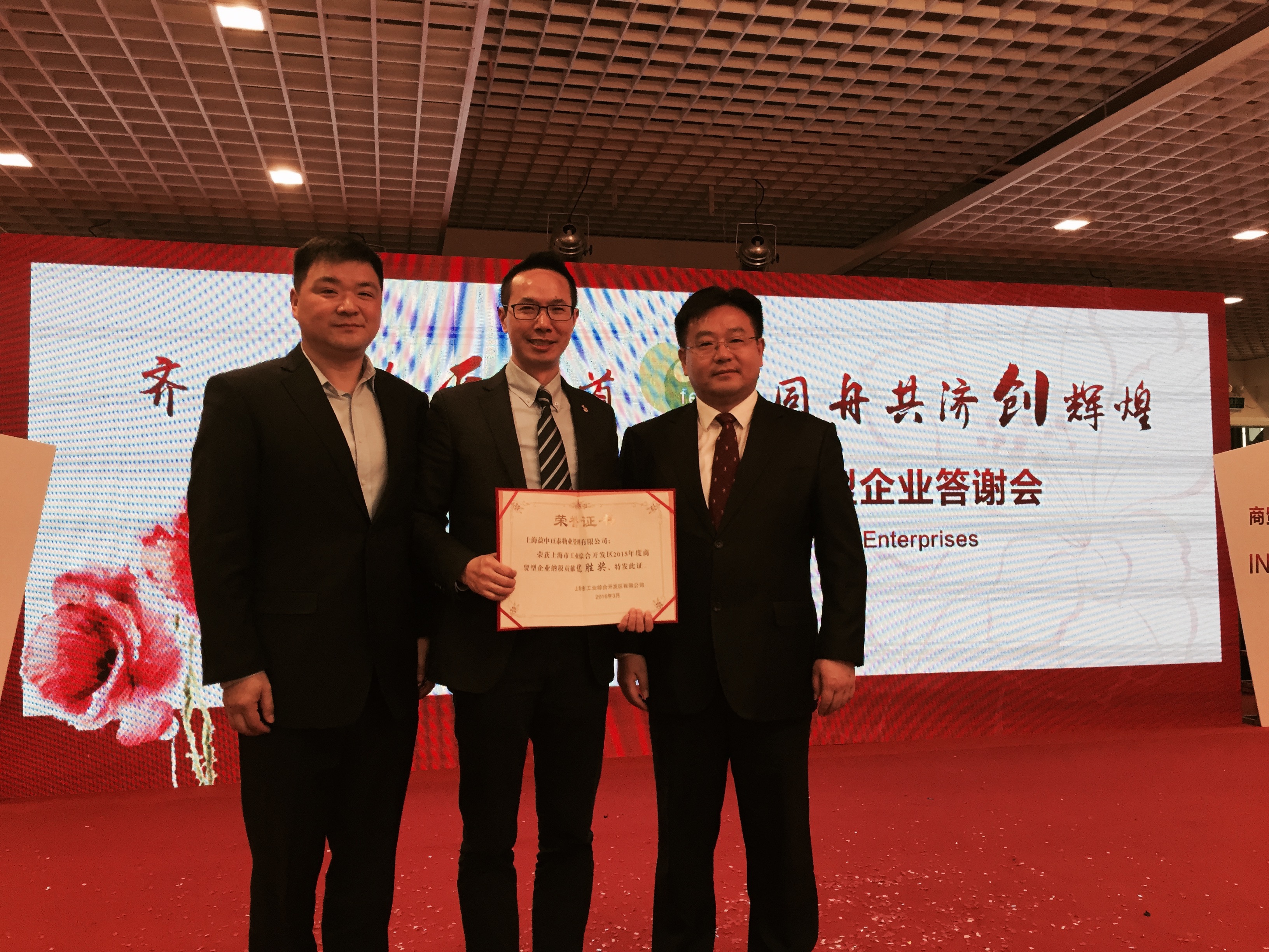 3月10日,上海市工業(yè)綜合開發(fā)區(qū)舉行“齊心協(xié)力再聚首,同舟共濟創(chuàng)輝煌”答謝會,我司上海益中亙泰(集團)公司榮獲2015年度上海市工業(yè)綜合開發(fā)區(qū)納稅貢獻優(yōu)勝獎。