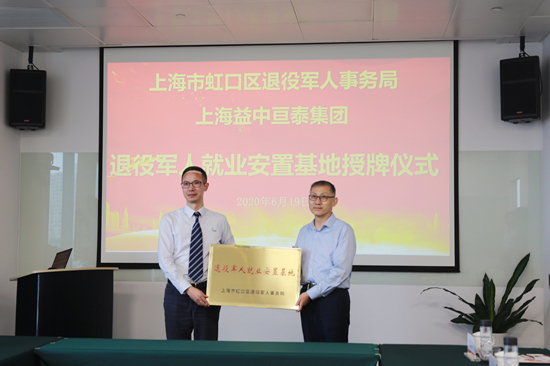 6月19日下午,在益中亙泰集團(tuán)上??偛?,上海市退役軍人事務(wù)局副局長屈新平將“上海市虹口區(qū)退役軍人就業(yè)安置基地”這塊載著榮耀和責(zé)任的銅牌授予益中亙泰集團(tuán)。上海市退役軍人事務(wù)局移交安置處(就業(yè)創(chuàng)業(yè)處)姚勇,上海市虹口區(qū)退役軍人事務(wù)局局長張斌、副局長夏維華,益中亙泰集團(tuán)董事長(總裁)朱春堂、副總裁陳荒明和虹口區(qū)退役軍人事務(wù)局相關(guān)部門負(fù)責(zé)人出席了授牌儀式。此前,上海市虹口區(qū)退役軍人事務(wù)局副局長夏維華和益中亙泰集團(tuán)副總裁陳荒明正式簽署合作協(xié)議,拉開了雙方深化退役軍人安置工作合作的新序幕。