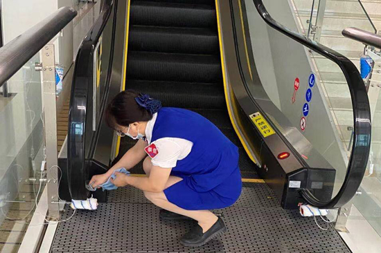 按照防疫要求,醫(yī)院作為每天人員頻繁流動的公共場所,既要憑健康碼進(jìn)入,也要保證公共設(shè)施的及時消毒;為避免交叉感染,首次采用創(chuàng)新的“打點(diǎn)滴”方式為扶梯扶手帶消毒,起到事半功倍的效果。