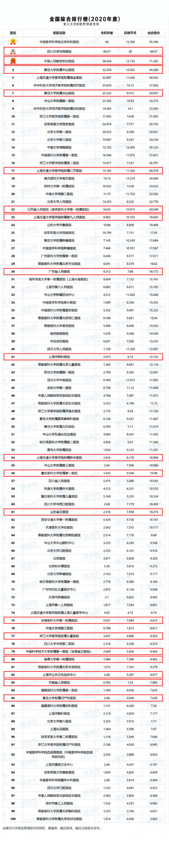 11月20日,由復(fù)旦大學(xué)醫(yī)院管理研究所邀請國內(nèi)著名同行專家擔(dān)任評審的復(fù)旦版《2020年度中國醫(yī)院綜合排行榜》和復(fù)旦版《2020年度中國醫(yī)院??坡曌u排行榜》在上海市發(fā)布。