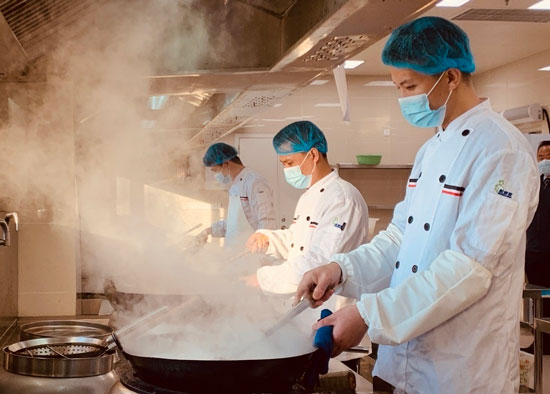 到達新院區(qū)后,“醫(yī)管家”餐飲服務中心立即展開對新院區(qū)食堂全方面的消毒并對食堂整體環(huán)境進行布置:實行分散就餐,一人一桌;張貼十余種就餐標識;布置綠植,凈化空氣;并在中午準點完成豐盛午餐供應,保證喬遷之后就餐體驗的有序性和無縫性,配合院方圓滿完成此次院區(qū)搬遷任務。