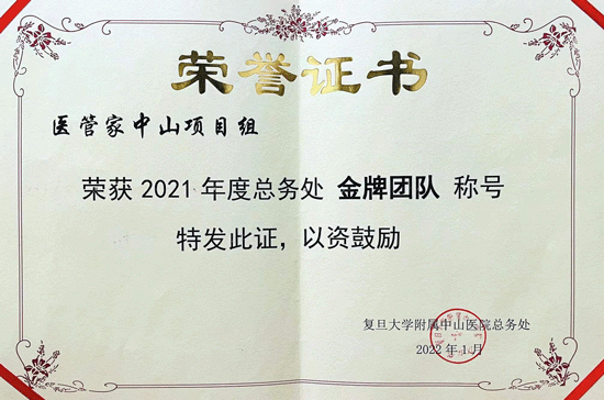 【喜報(bào)】“醫(yī)管家”中山項(xiàng)目組榮獲金牌團(tuán)隊(duì)榮譽(yù)稱號(hào)!