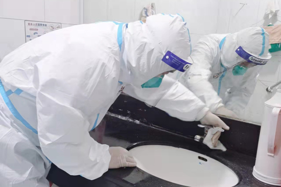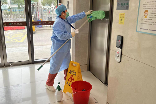 “醫(yī)管家”全國各項目后勤服務中心以最快的速度響應并配合院方迅速落實各項防控工作,嚴格執(zhí)行防控措施,各項目管理人員與一線員工均化身成“大白”,每日針對醫(yī)院門診樓、住院部、行政樓、公共區(qū)域等進行重點消毒消殺工作,對電梯、衛(wèi)生間、樓道等高頻觸摸點位堅決實施“人過即消殺”指令,不放過任何一處衛(wèi)生死角,不給病毒任何可乘之機。
