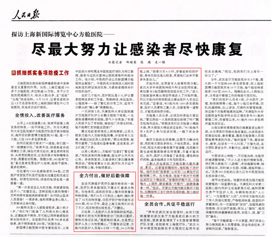 “醫(yī)管家”亮相人民日報,講述奮戰(zhàn)在方艙中的后勤人