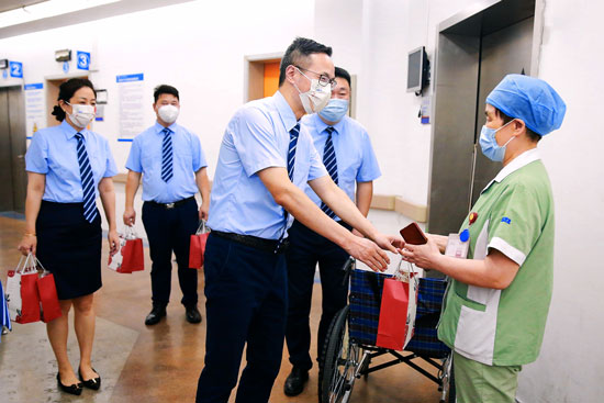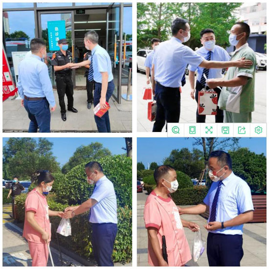 送的是清涼,暖的是人心。江蘇省院分管后勤院長朱院長、西南中醫(yī)分管后勤院長張?jiān)洪L等眾多院方領(lǐng)導(dǎo)親自帶隊(duì),向堅(jiān)守在一線崗位的“醫(yī)管家”員工們送來親切的問候以及防暑降溫的飲品、藥品、水果等慰問品,并叮囑團(tuán)隊(duì)同事之間一定要彼此關(guān)照,互幫互助,時(shí)時(shí)刻刻注意安全生產(chǎn),同時(shí)希望大家在工作中加強(qiáng)防暑防疫,在平凡而光榮的崗位上繼續(xù)展風(fēng)采。