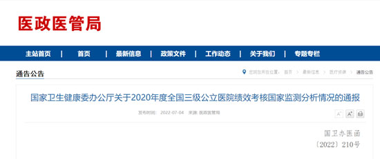 日前,國(guó)家衛(wèi)生健康委辦公廳發(fā)布《關(guān)于2020年度全國(guó)三級(jí)公立醫(yī)院績(jī)效考核國(guó)家監(jiān)測(cè)分析情況的通報(bào)》(簡(jiǎn)稱《通報(bào)》),這是我國(guó)第三次公布三級(jí)公立醫(yī)院的“國(guó)考”結(jié)果。