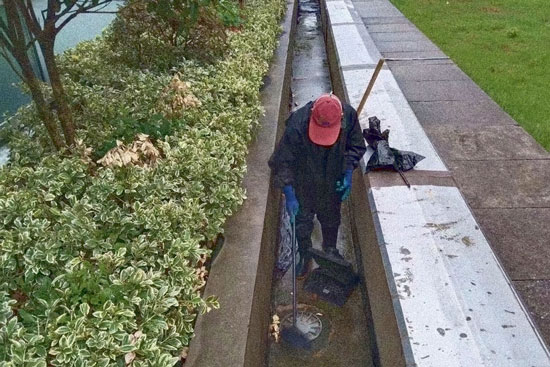 排查隱患,不給危情有可乘之機(jī)?!搬t(yī)管家”眾項(xiàng)目抗臺防汛組上下一心,拆除一切戶外安全隱患設(shè)備設(shè)施、對各個樓頂屋面排水溝檢查清淤、檢查地下室集水井水泵運(yùn)行情況、巡查各樓層窗戶關(guān)閉情況;為防止降雨量大,導(dǎo)致路面積水,眾項(xiàng)目抗臺防汛組提前對溝底進(jìn)行落葉及垃圾的清理,對各處進(jìn)水口進(jìn)行疏通,確保進(jìn)水口通暢;同時,對雨水管、排污管、集水井等管道井道進(jìn)行清理及疏通,對抽水設(shè)備等進(jìn)行檢查維修,確保各線路設(shè)施完好無損,極力避免漏電斷電等意外發(fā)生。