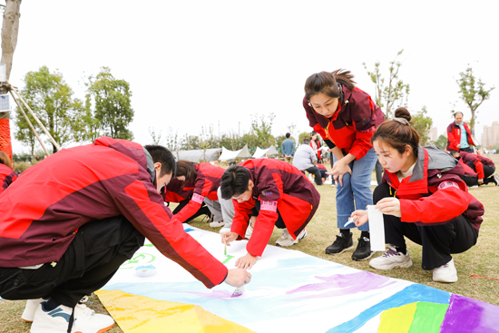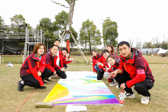 在共繪未來的環(huán)節(jié),5組團(tuán)隊(duì)分開各自進(jìn)行繪畫,隊(duì)內(nèi)成員們溝通協(xié)作,合理分工,通過調(diào)色、上色、拼接等步驟完成最終的團(tuán)隊(duì)巨畫,呈現(xiàn)的效果十分震撼,每一個團(tuán)隊(duì)都完美的展現(xiàn)了挑戰(zhàn)的無限可能,每一個人都繪制出團(tuán)隊(duì)不可或缺的一部分。