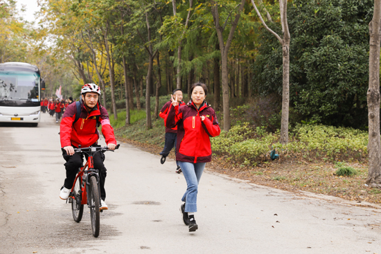 熱身之后便迎來了本次團(tuán)建活動的重頭戲—“激揚(yáng)青春”20公里越野接力賽。每組參賽選手們個個精神飽滿、斗志昂揚(yáng),比賽現(xiàn)場加油聲、吶喊聲此起彼伏,場面激情熱鬧。接力過程中,參賽選手們擊掌接力,相互鼓勵,在賽道上揮灑汗水,奮力拼搏。堅(jiān)持勝利的信心,讓他們毫無畏懼地沖向終點(diǎn);向往冠軍的榮譽(yù),讓他們自始至終,堅(jiān)持不懈,拼盡全力。