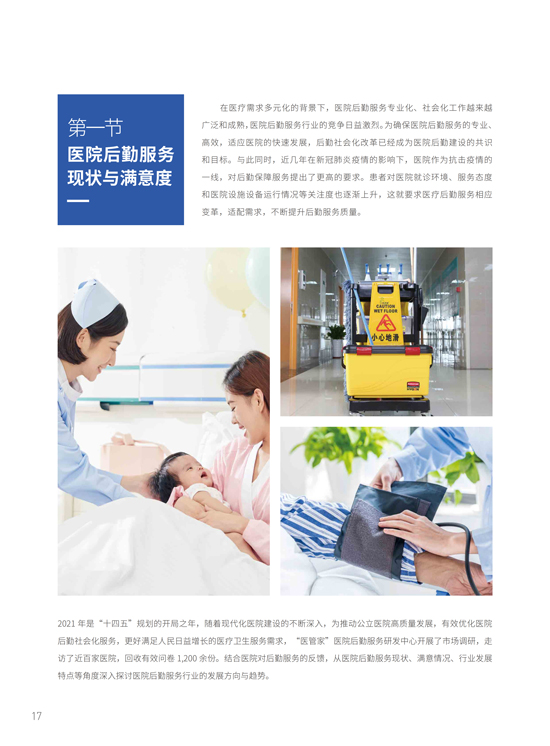 本報(bào)告從醫(yī)院后勤服務(wù)滿(mǎn)意情況、政策影響、疫情防控、醫(yī)院后勤精細(xì)化、節(jié)能降耗、智慧化建設(shè)等角度深入剖析了新形勢(shì)下醫(yī)院后勤管理面臨的挑戰(zhàn)和新的需求,探討醫(yī)院后勤服務(wù)行業(yè)的發(fā)展方向與趨勢(shì)。以下僅為報(bào)告中部分內(nèi)容,查看完整版內(nèi)容,可在“醫(yī)管家”公眾號(hào)后臺(tái)回復(fù)【白皮書(shū)】,參與問(wèn)卷調(diào)研,即可領(lǐng)取,限量100份??!