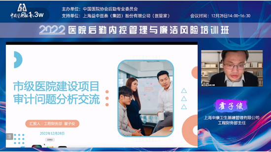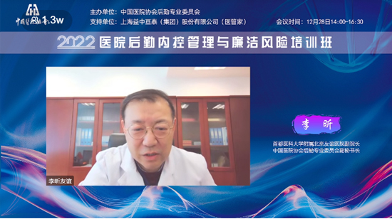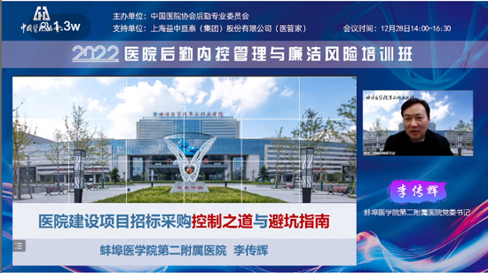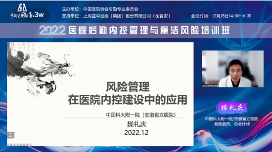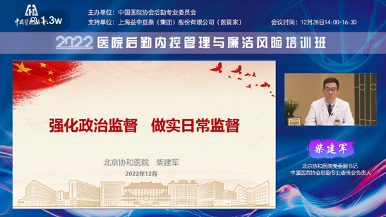 2022年12月28日,由中國醫(yī)院協(xié)會后勤專業(yè)委員會主辦的“醫(yī)院后勤內(nèi)控管理與廉潔風(fēng)險培訓(xùn)班”成功舉辦。此次培訓(xùn)會議采取線上直播的方式,眾多業(yè)內(nèi)專家、學(xué)者齊聚云端,培訓(xùn)熱度持續(xù)高漲,吸引了1.3萬余人次在線觀看。
