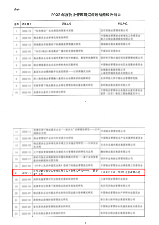 會(huì)上,中國(guó)物業(yè)管理協(xié)會(huì)頒發(fā)了《2022年中國(guó)物業(yè)管理協(xié)會(huì)研究課題成果驗(yàn)收證書(shū)》。多年來(lái),上海益中亙泰集團(tuán)(股份)有限公司(以下簡(jiǎn)稱(chēng):益中亙泰)始終關(guān)注客戶(hù)體驗(yàn)和需求滿足,致力于以標(biāo)準(zhǔn)化提升專(zhuān)業(yè)服務(wù)水準(zhǔn),連續(xù)多年參與中國(guó)物業(yè)管理協(xié)會(huì)組織的各項(xiàng)研究課題,并為課題研究提供了大量寶貴的數(shù)據(jù)和實(shí)踐經(jīng)驗(yàn)。