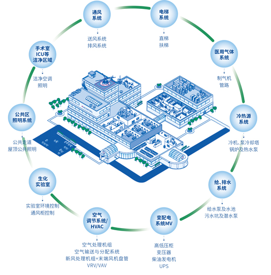 醫(yī)院用能設(shè)備主要包括醫(yī)療及辦公系統(tǒng)設(shè)備、蒸汽熱水系統(tǒng)、采暖空調(diào)、通風(fēng)系統(tǒng)、電梯系統(tǒng)、照明系統(tǒng)等,新舊設(shè)備并存,節(jié)能工作的復(fù)雜程度高于普通公共建筑,醫(yī)院可以通過建立能效管理平臺(tái)對(duì)院內(nèi)主要能耗設(shè)備進(jìn)行能耗分項(xiàng)計(jì)量,精準(zhǔn)展現(xiàn)用能情況、用能效率和優(yōu)化潛力。
