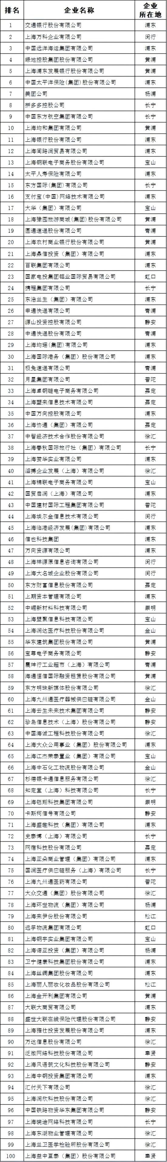 2024上海服務業(yè)企業(yè)100強