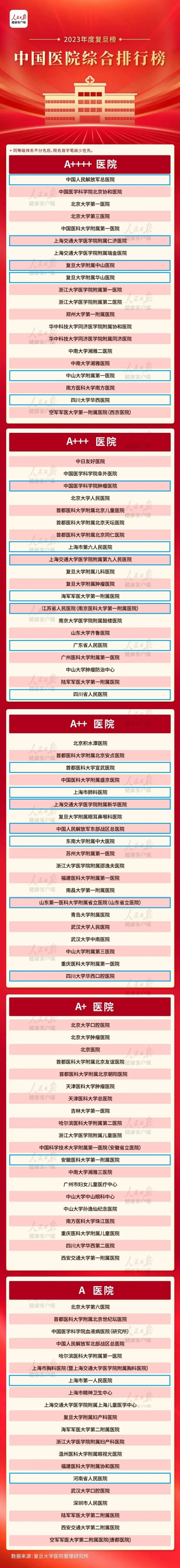 11月16日,由全國(guó)近6000名國(guó)內(nèi)著名同行專家參與評(píng)選的復(fù)旦版《2023年度中國(guó)醫(yī)院綜合排行榜》和復(fù)旦版《2023年度中國(guó)醫(yī)院專科聲譽(yù)排行榜》在上海市發(fā)布。 全國(guó)共有100家醫(yī)院進(jìn)入《2023年度中國(guó)醫(yī)院排行榜》,45個(gè)??疲ㄇ?0名)榜上有名,這是復(fù)旦版中國(guó)醫(yī)院排行榜連續(xù)第十五年發(fā)布。