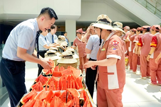 同時(shí)為員工們送去清涼物資,將一份份滿載著關(guān)懷的“清涼大禮包”遞到一線員工的手中。朱總在項(xiàng)目現(xiàn)場(chǎng)叮囑:“大家務(wù)必做好自我防護(hù),科學(xué)安排作息,確保安全度夏!”一句句貼心的關(guān)懷,一份份清涼的問(wèn)候,正轉(zhuǎn)化為護(hù)航健康的堅(jiān)實(shí)屏障,更凝聚成全員戰(zhàn)高溫、保服務(wù)的澎湃動(dòng)能。