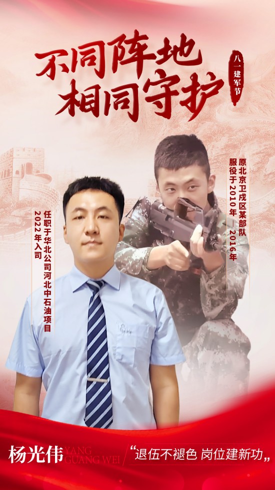 5年的軍旅生涯錘煉了自己忠誠擔當、紀律嚴明的軍人本色。退役后加入“醫(yī)管家”大家庭,依舊將軍隊作風融入工作:以“令行禁止”的執(zhí)行力攻堅克難,以“服務為本”的初心踐行集團“三服務”標準。從握鋼槍到執(zhí)工具,將兵心融入到工作中,堅持以標準化培訓員工,傳承軍人精神,在面對崗位服務對象多元化工作中堅持以“始終沖鋒在前”,用行動詮釋“退伍不褪色,崗位建新功”的誓言。