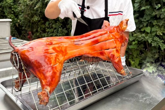 當(dāng)序曲奏響,主角們紛紛登場(chǎng),一起譜寫(xiě)一首舌尖交響曲。低糖低鹽的精準(zhǔn)配比,激發(fā)食材本身鮮香。經(jīng)過(guò)“選料—腌味—定形—脆皮—烤焙”5大工序,“皮如琥珀、肉似瓊脂”的烤乳豬,“閃亮”登場(chǎng);看似相同的面點(diǎn),卻有著不同的驚喜,每一枚上都精心印刻著吉祥一字,吃下的是美味,收獲的是“平安喜樂(lè),福壽雙全”;色彩繽紛的茶歇,采用減糖安心的動(dòng)物奶油制作,松軟到入口即化。