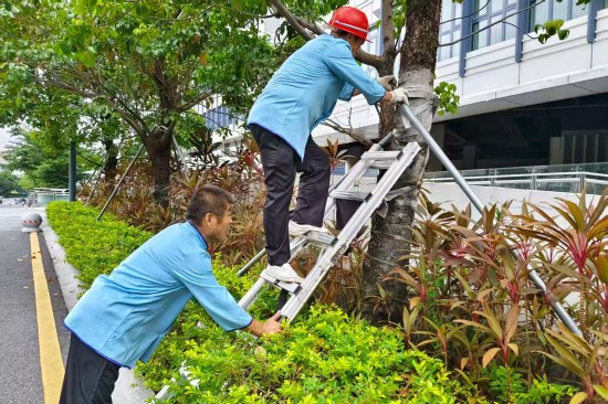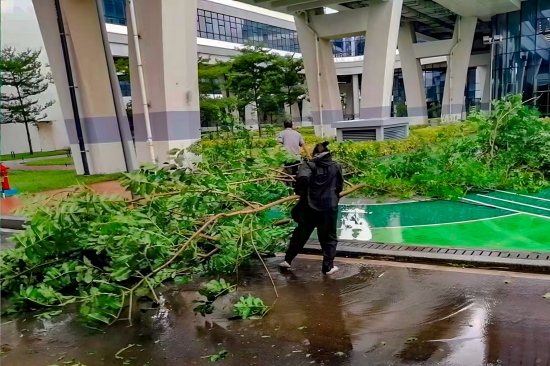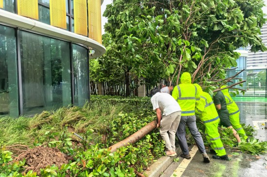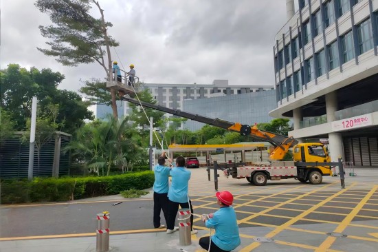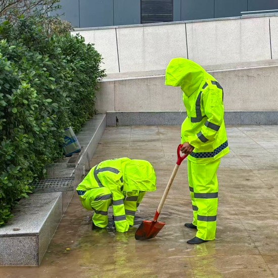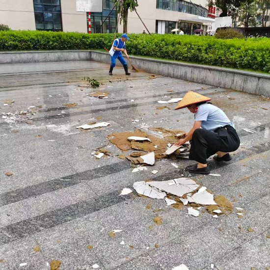 風雨漸歇,但“醫(yī)管家”的奮戰(zhàn)并未停步。各項目團隊迅速將工作重心從應急搶險轉(zhuǎn)向災后恢復。全員清理轉(zhuǎn)運斷枝落葉,快速修復損毀標識,并對全院區(qū)特別是積水區(qū)域開展重點消殺,嚴防災后疫情;開展積水巡查和隱患排查,重點對天臺、路面、地庫及院區(qū)內(nèi)各類排水管道、進水口進行疏通,快速清理因臺風帶來的雜物堵塞;對配電、供水等關(guān)鍵系統(tǒng)進行地毯式排查,堅持“即查即修”,快速恢復基礎設施運行,全力協(xié)助醫(yī)院恢復正常診療秩序。