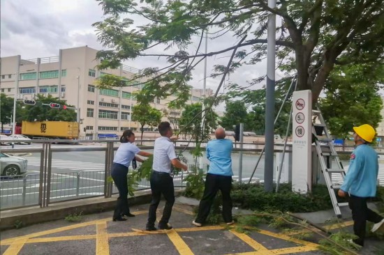 打通應急通道,守護生命線。當院區(qū)主干道被刮倒的樹木阻斷,應急隊員迅速穿戴雨具、手持油鋸沖入風暴,在搖搖欲墜的斷枝下緊急作業(yè),快速切割、清運障礙,第一時間恢復“救護車通道”暢通,確保急救車輛與物資運輸無阻。