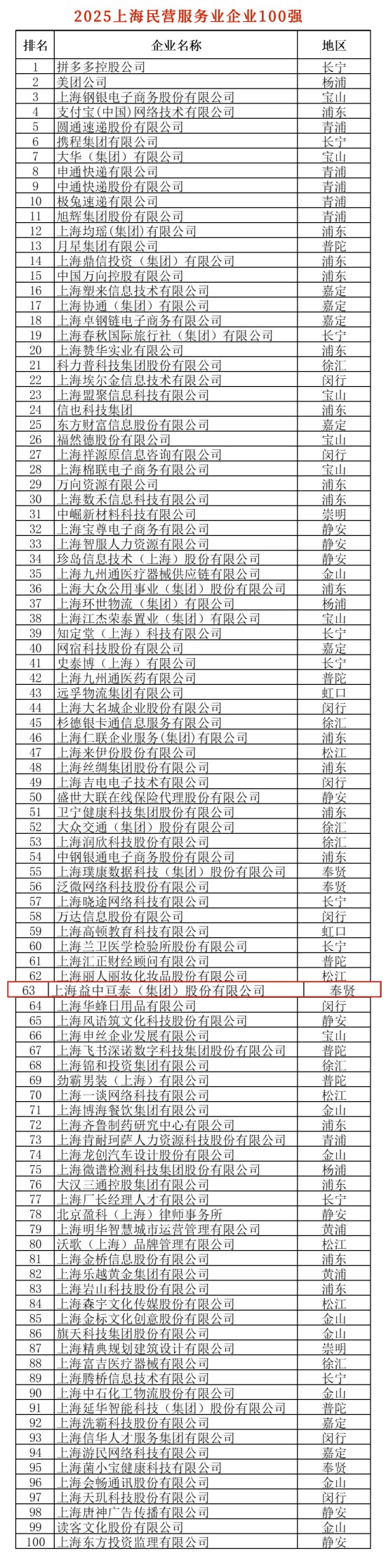 在最新發(fā)布的2025上海百強企業(yè)榜單中,“醫(yī)管家”憑借卓越的服務(wù)和持續(xù)的創(chuàng)新再次榮獲“上海民營服務(wù)業(yè)企業(yè)100強”稱號,并實現(xiàn)排名進階,位列第63名!