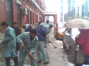 大家犧牲中午休息時間全體出動,清除積雪。有的是剛維修回來,有的剛端上飯碗、有的是準備回家,大家紛紛加入。拿鐵鏟、拿掃帚、拿木板,一時間人聲鼎沸。 風很大,天很冷,下過雪的天氣讓平時熱鬧的道路變得格外冷清,但“醫(yī)管家”人的勞動場面卻十分熱烈。有的濕透了衣服,有的淋濕鞋襪,沒有一絲一毫的怨言, 沒有一點一滴的牢騷。充分發(fā)揮了“醫(yī)管家”團隊的作風,展現(xiàn)“亙泰人”良好精神面貌。