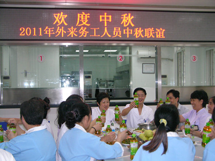 在一年一度的中秋佳節(jié)來臨之際,我項目于9月9日中午組織因堅守工作崗位而不能回家過節(jié)的外地員工聚餐。醫(yī)院黨政工領(lǐng)導(dǎo)帶著月餅和水果,親自參加了此次活動,跟大家歡聚一堂。員工們深深地感受到了節(jié)日的氣氛、領(lǐng)導(dǎo)的關(guān)懷與集體的溫暖,在上海度過了一個安心、歡樂、祥和的中秋佳節(jié)。