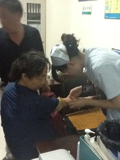 因?yàn)楸仨毧崭?,為了不影響醫(yī)管家員工的工作,10日早晨6點(diǎn),內(nèi)分泌科護(hù)士長(zhǎng)和5名護(hù)士就出現(xiàn)在了醫(yī)管家辦公室。她們分成3組,一組進(jìn)行員工資料的詳細(xì)登記,一組進(jìn)行血常規(guī)檢測(cè),另一組進(jìn)行靜脈抽血。