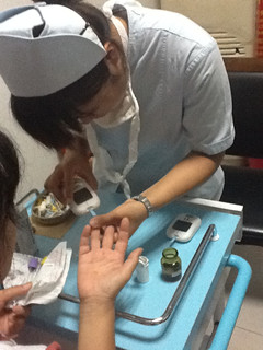 義診查出4名員工血糖過(guò)高,下午在護(hù)士長(zhǎng)的安排下,這4名員工到內(nèi)分泌科接受糖尿病主治醫(yī)生的開(kāi)方診治。
