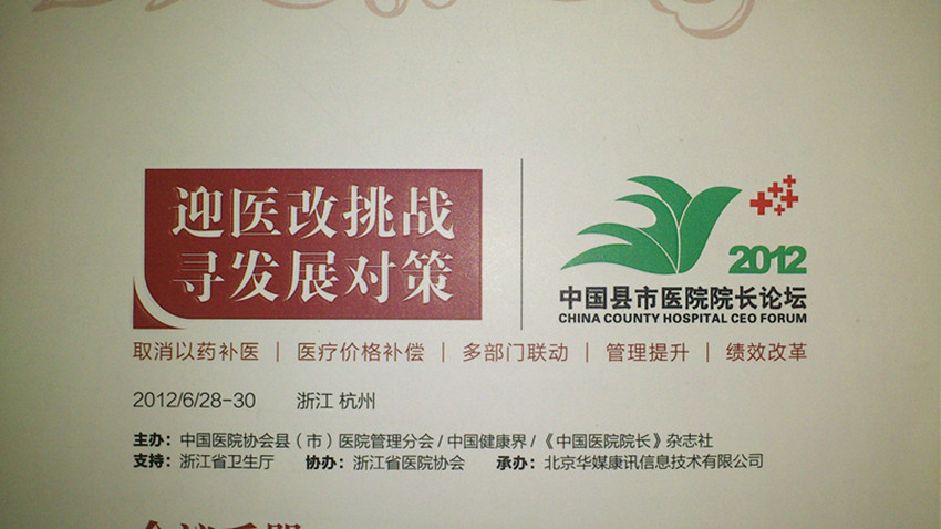 由中國(guó)醫(yī)院協(xié)會(huì)縣市醫(yī)院管理分會(huì)主辦的,迎“醫(yī)改挑戰(zhàn),尋發(fā)展對(duì)策”的會(huì)議在浙江杭州美麗的太虛湖酒店召開(kāi)了。