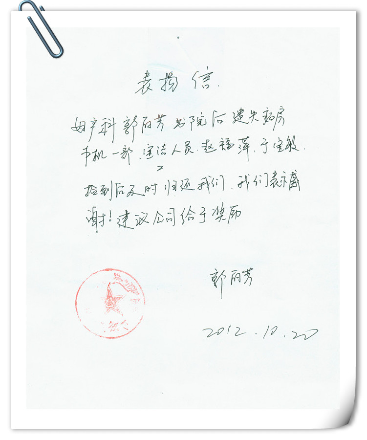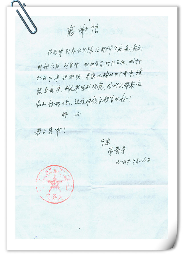 以下是表揚信及感謝信原件(因來自同一家醫(yī)院,就不再開篇一一列述)