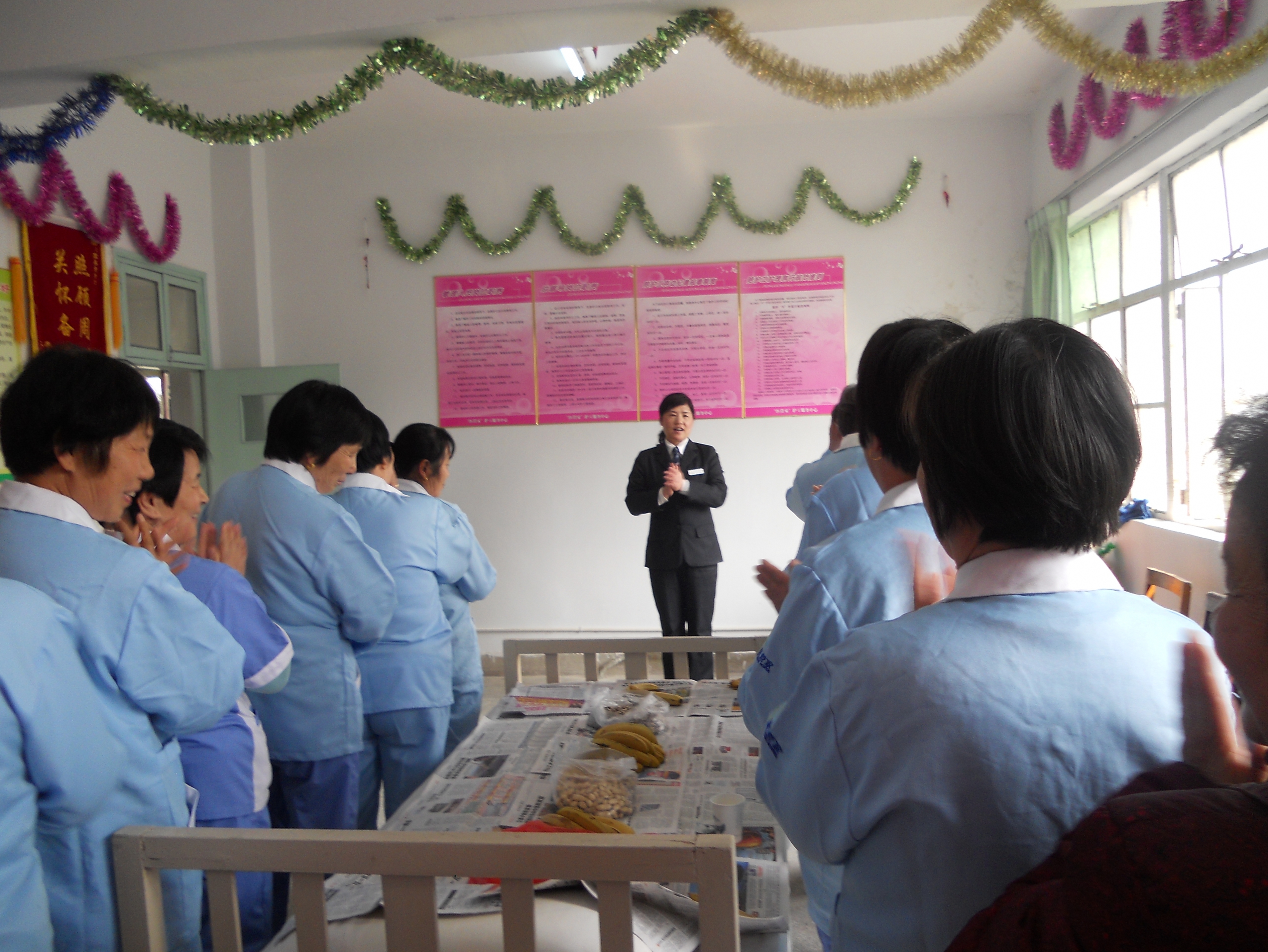 茶話會上管理人員首先祝大家節(jié)日快樂,并給所有的護(hù)工人員提前送上了節(jié)日的祝福,接著管理人員和大家一起回顧了去年的工作歷程,從中找出不足并總結(jié)經(jīng)驗,為提高陪護(hù)技能打下基礎(chǔ),掀起一股向優(yōu)秀護(hù)工學(xué)習(xí)的熱潮。管理人員向員工們推廣晨會口號“您滿意,我開心,加油!加油!”,讓護(hù)工們帶著飽滿的精神走向工作崗位,以熱情、溫暖、周到、細(xì)致的服務(wù)態(tài)度服務(wù)病患。