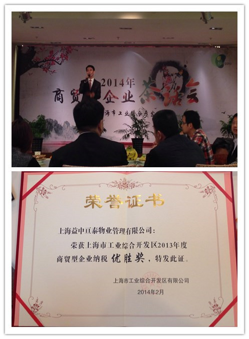 2014年2月26日,“上海市工業(yè)綜合開發(fā)區(qū)2013年度商貿(mào)型企業(yè)茶話會(huì)”在上海市奉賢區(qū)麗洲俱樂部3樓宴會(huì)廳隆重召開。上海益中亙泰物業(yè)管理有限公司("醫(yī)管家")董事長(zhǎng)朱春堂應(yīng)邀參加此次會(huì)議。會(huì)議對(duì)工業(yè)區(qū)內(nèi)所有規(guī)模企業(yè)的納稅情況進(jìn)行分析評(píng)比與頒獎(jiǎng),以表彰當(dāng)年表現(xiàn)突出的公司為工業(yè)區(qū)所做出的貢獻(xiàn)。因上海益中亙泰物業(yè)管理有限公司多年來(lái)一直遵循依法誠(chéng)信納稅,所以連續(xù)三年獲得在開發(fā)區(qū)納稅、產(chǎn)值貢獻(xiàn)上的榮譽(yù)獎(jiǎng)項(xiàng),今年也不負(fù)所望,榮獲“商貿(mào)型企業(yè)納稅優(yōu)勝獎(jiǎng)”光榮稱號(hào)。