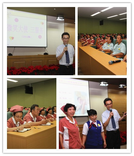 6月17日下午,我院醫(yī)管家在新綜合樓報告廳進行微笑大使三服務(wù)專題講座,邀請上海總公司人事管理部顧經(jīng)理主講,全院后勤服務(wù)人員和服務(wù)中心人員積極參加學(xué)習(xí)。