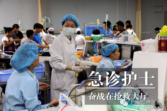 搶救大廳一派繁忙的景象,護士們緊張地工作著。