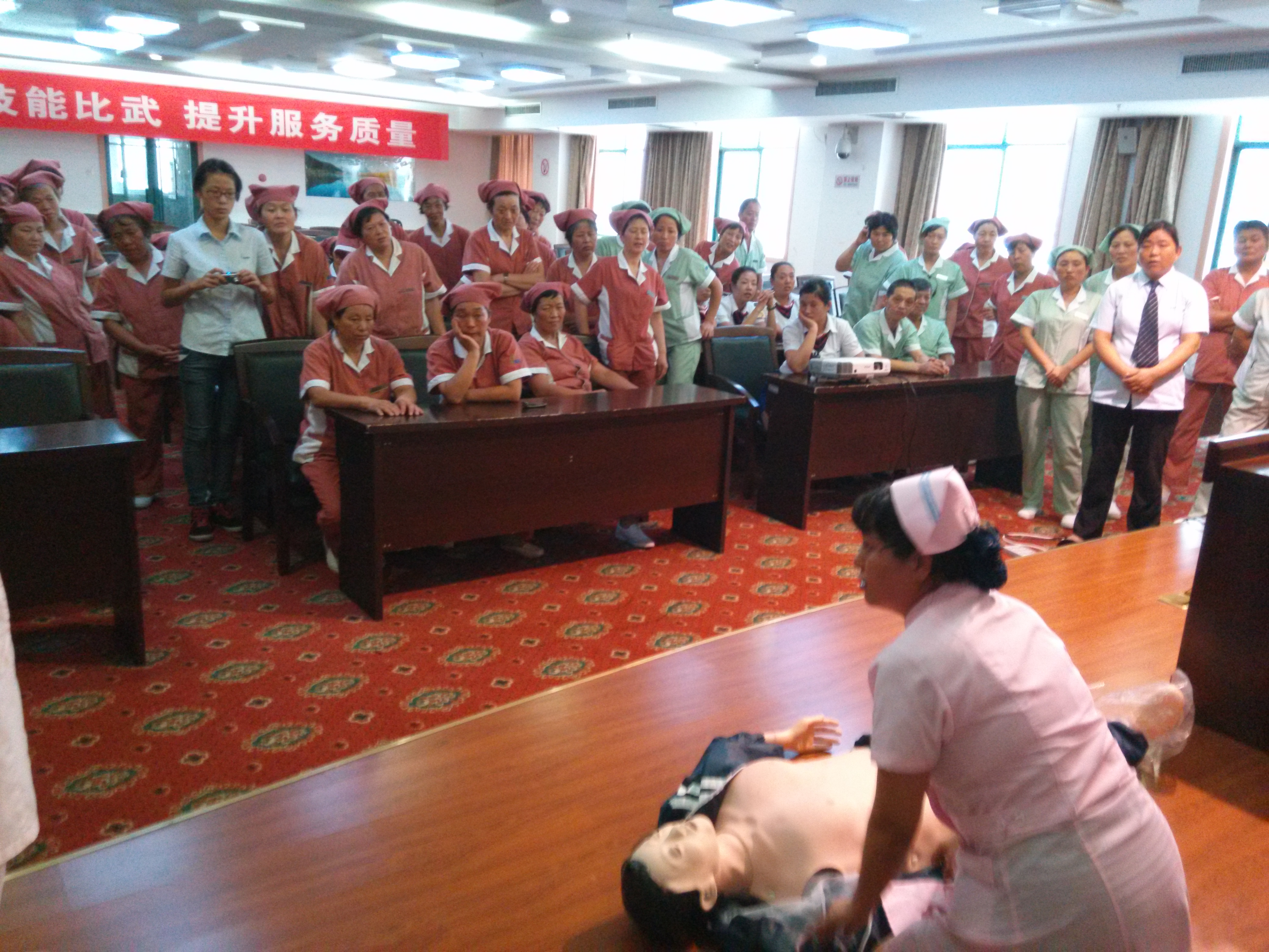 在實(shí)操培訓(xùn)時(shí),施主任和王護(hù)士長(zhǎng)利用培訓(xùn)道具給員工們實(shí)操培訓(xùn)胸外按壓急救法和人工呼吸法。其中講解了很多的注意事項(xiàng),包括胸外按壓法步驟及位置、次數(shù)、力度、節(jié)奏等要素。員工們圍著老師津津有味的學(xué)習(xí)著,老師們教的負(fù)責(zé),學(xué)生們學(xué)的認(rèn)真。