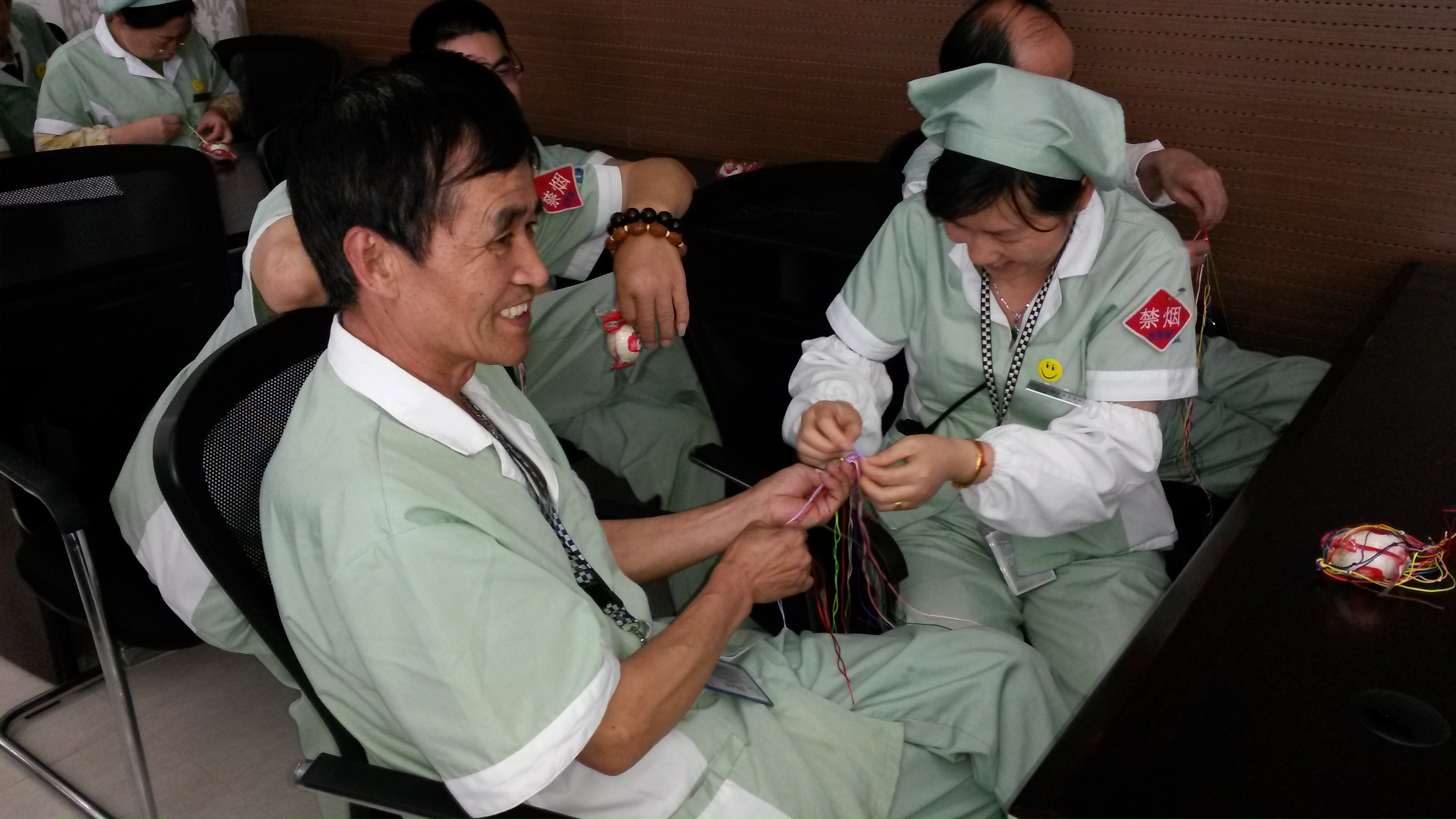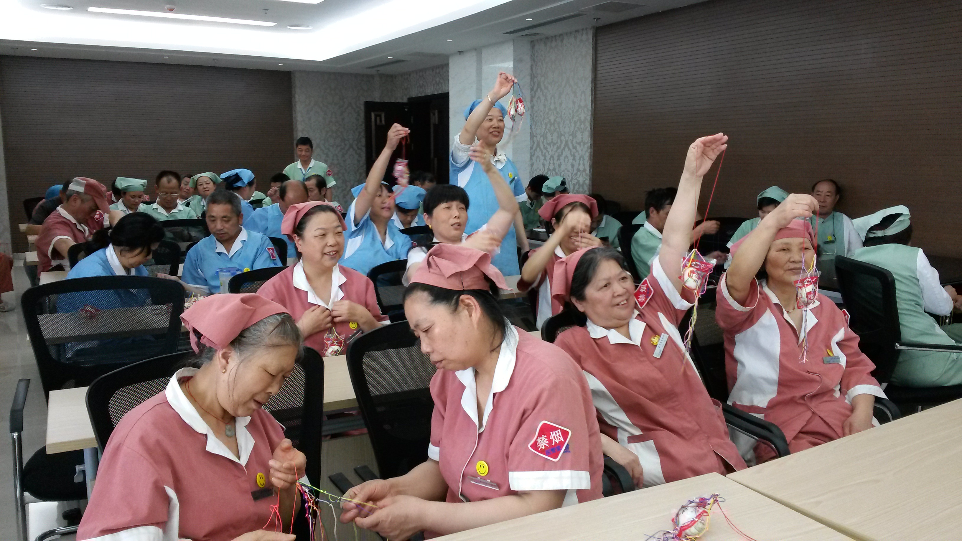 雙月度會議活動時,員工的積極性特別高漲。無論男女員工都投入到編制中,有的員工邊編邊唱,還有員工邊編邊和其他人聊起小時候怎么過端午節(jié),大家你一言我一語,很快就有人拿出編好的袋子,開心的和大家一起分享。