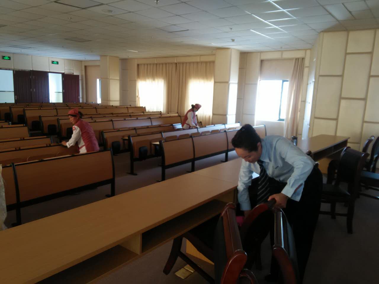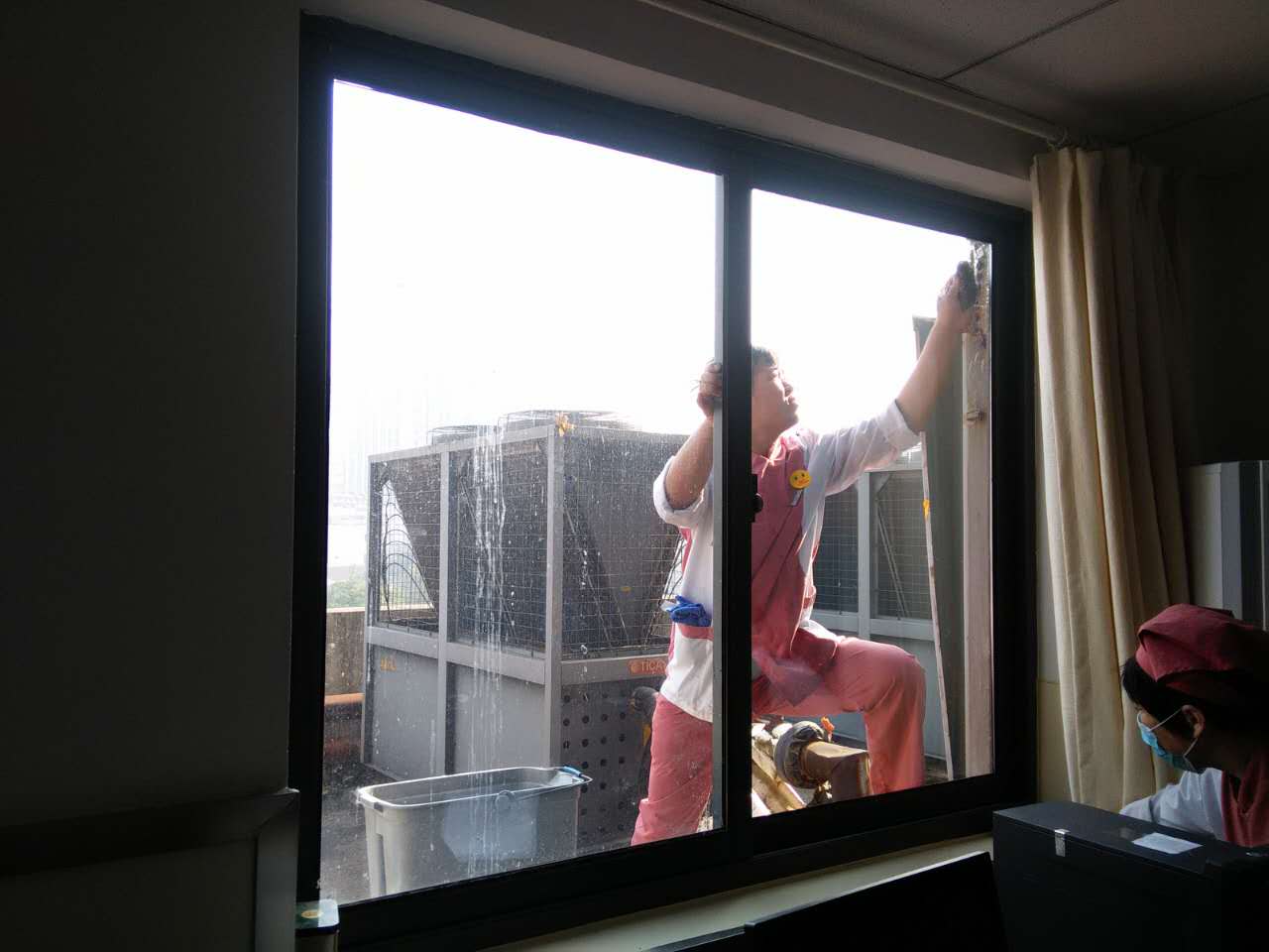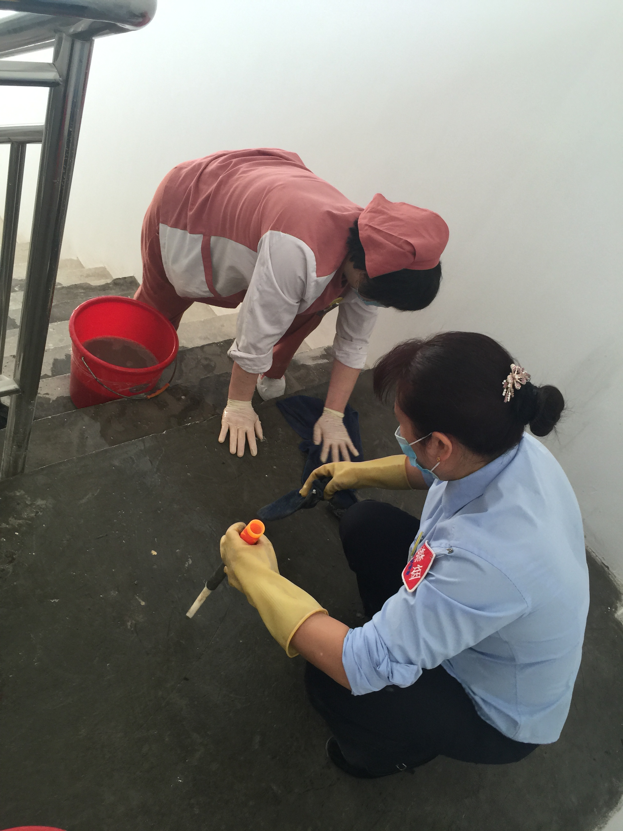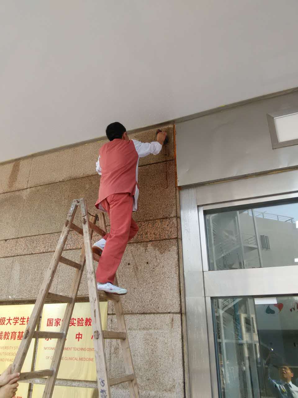 剛接手這棟樓,樓內(nèi)有很多鋁合金窗框都已氧化,經(jīng)過(guò)我們努力清理后現(xiàn)在已是煥然一新。從8月份進(jìn)場(chǎng),在項(xiàng)目團(tuán)隊(duì)和總部支持的共同努力下,短期內(nèi)完成了開(kāi)荒保潔工作。為了迎接10月份臨床教學(xué)迎評(píng)活動(dòng),大家加班加點(diǎn)完成了緊張有序的前期細(xì)節(jié)衛(wèi)生清潔工作中,不料就在臨近迎評(píng)前期,各樓層保潔工作已經(jīng)完成時(shí),意想不到的事情卻發(fā)生了:各種教學(xué)模具桌椅板凳不停的搬運(yùn),空調(diào)、網(wǎng)線安裝人員分批出現(xiàn),安全通道全面粉刷,剛剛打掃干凈的環(huán)境一片狼藉;怎么辦?我們不得不要再次配合裝修施工單位反工進(jìn)行二次開(kāi)荒保潔工作。不斷清理運(yùn)送各種醫(yī)療設(shè)備外包裝垃圾勞動(dòng)強(qiáng)度非常大,時(shí)間緊任務(wù)重;這時(shí),“醫(yī)管家”團(tuán)隊(duì)精神得到彰顯全體成員團(tuán)結(jié)一致,精細(xì)分工,共同奮戰(zhàn);只見(jiàn)管理人員與員工一起奮斗在一線,大家放棄周日休息連續(xù)作戰(zhàn),省中醫(yī)院不但每天抽調(diào)員工支援中醫(yī)藥大學(xué)進(jìn)行迎評(píng)活動(dòng)開(kāi)荒工作,還必須要確保省中醫(yī)院的本職工作不受影響。省中醫(yī)院的運(yùn)送部王艷林經(jīng)理還主動(dòng)提出周六可以去中醫(yī)藥大學(xué)出一份力,這就是“醫(yī)管家”的管理人員,積極為集體榮譽(yù)而戰(zhàn)!我驕傲!
