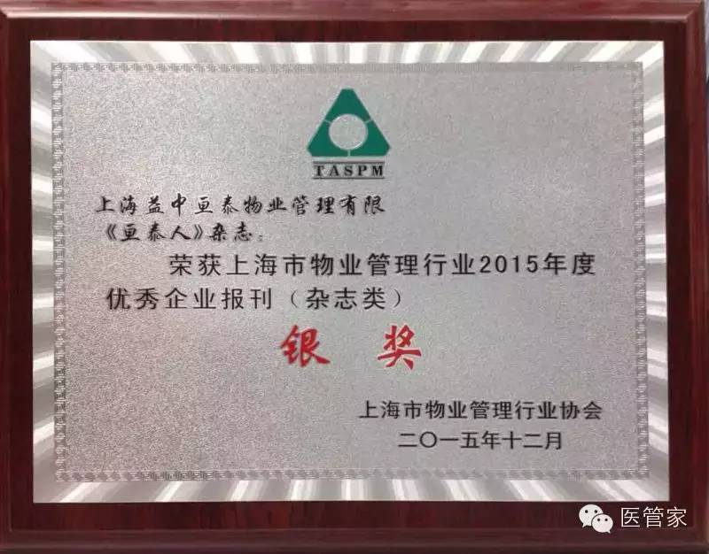 為展現(xiàn)我司《亙泰人》雜志的特色與優(yōu)越性,我司“醫(yī)管家”參加了由上海物業(yè)管理行業(yè)協(xié)會組織的2015年度優(yōu)秀企業(yè)報刊評選活動,并獲得了2015年度優(yōu)秀企業(yè)報刊(雜志類)銀獎。