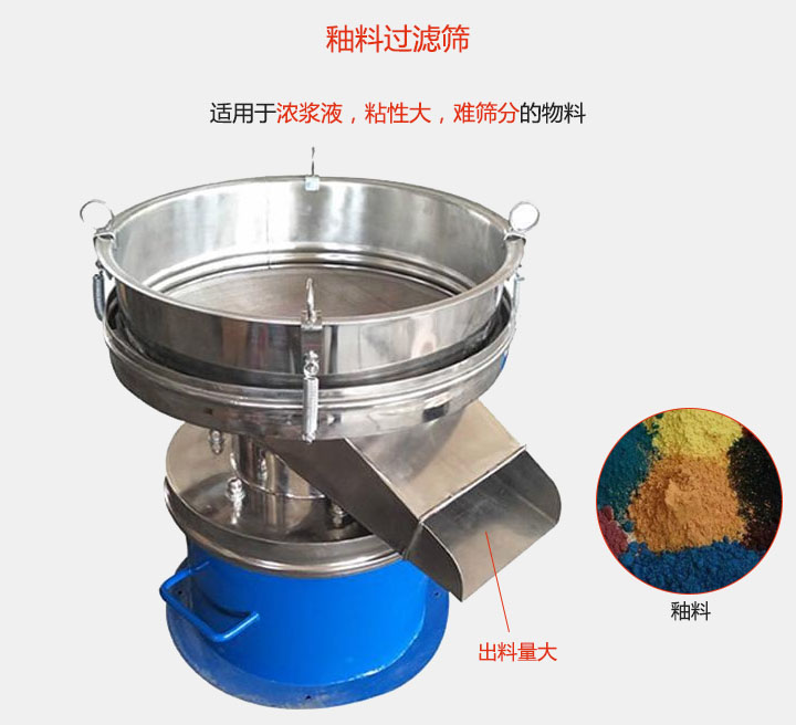 釉料過濾篩適用于:食品,陶瓷,醫藥,化工,油漆,冶金等行業廣泛應用。