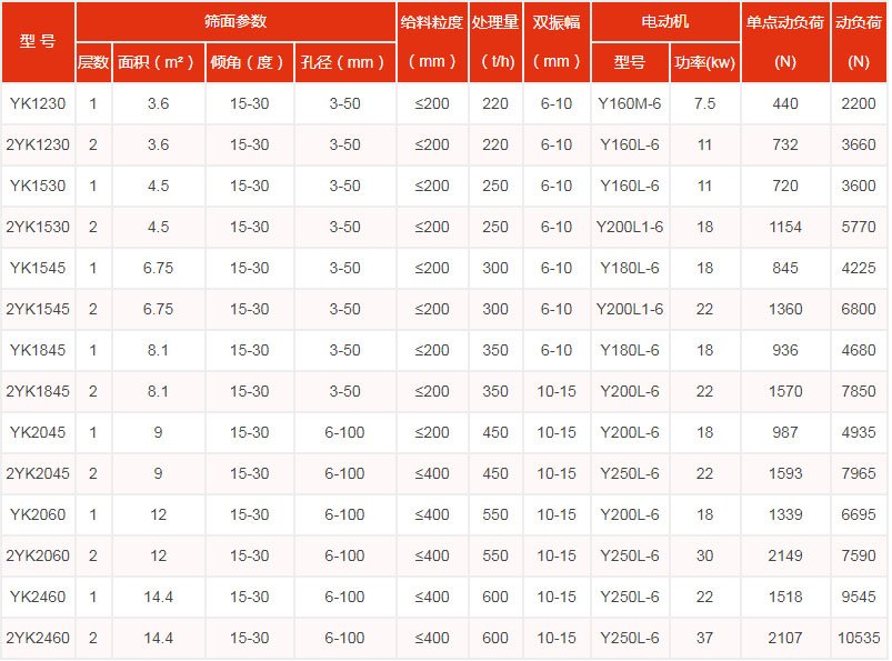 • YA圓振動篩技術參數
