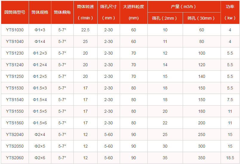 • 圓筒回轉篩技術參數